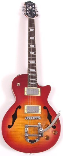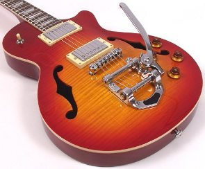 This guitar is equipped with a vintage tremolo and roller bridge for great effects