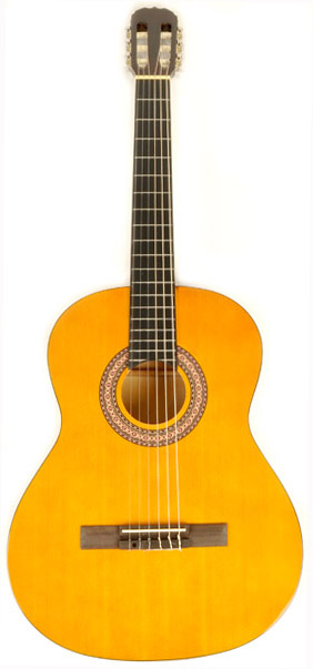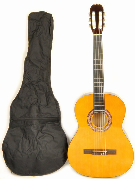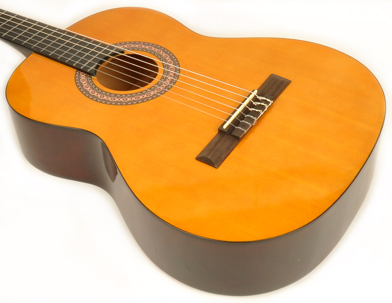 - Standard classical guitar setup: bottom 3 strings are steel, top 3 are nylon