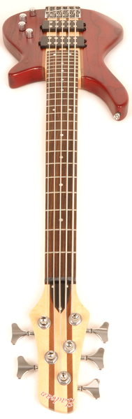 Deep cutaways allow easy access to the entire fingerboard on this 34" scale bass