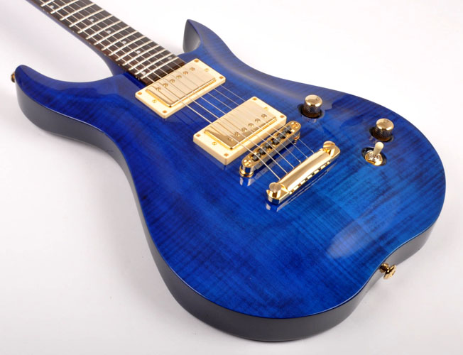This incredible guitar features a highly figured Maple Top on a solid Mahogany archtop body