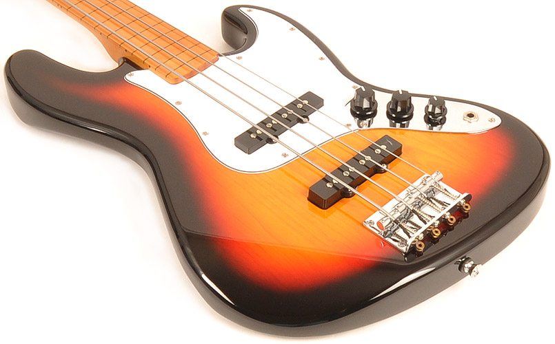 This bass guitar features a solid basswood body (not plywood) which delivers excellent tone and sustain